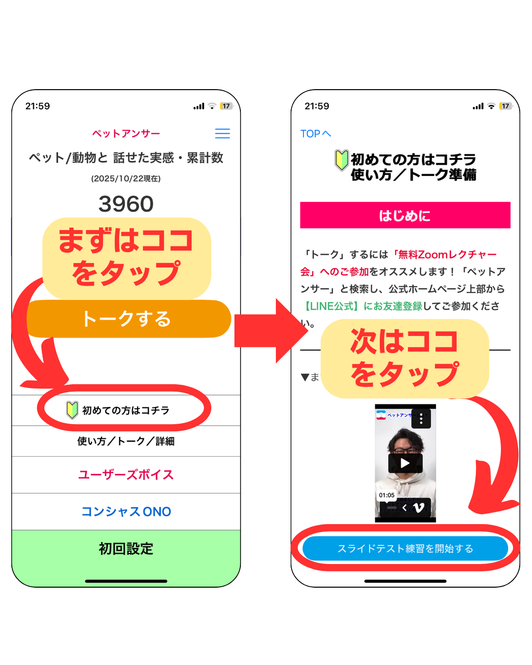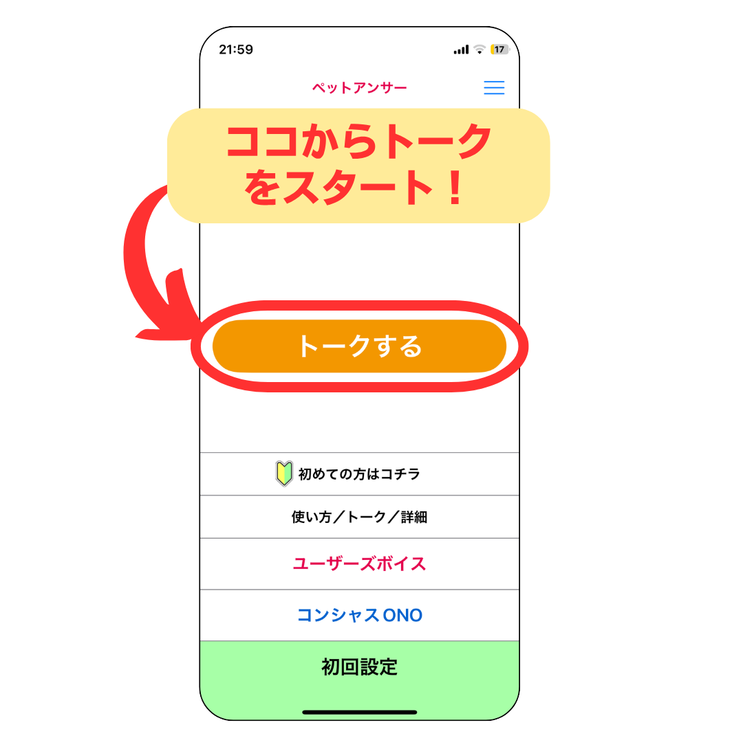 ※飼い主様がいる場合は、必ず飼い主様と口頭での許可を取ってからトークしてください