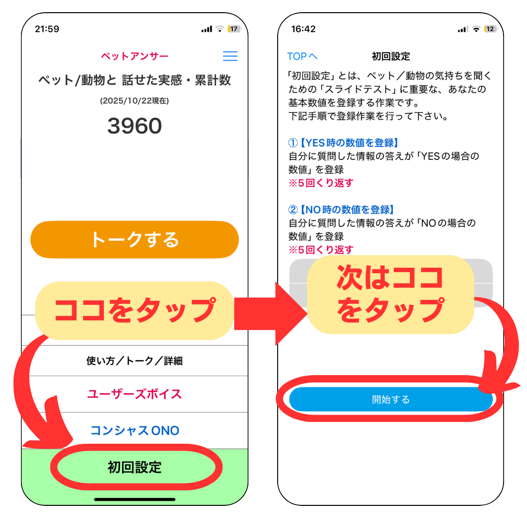 →【開始する】をタップ